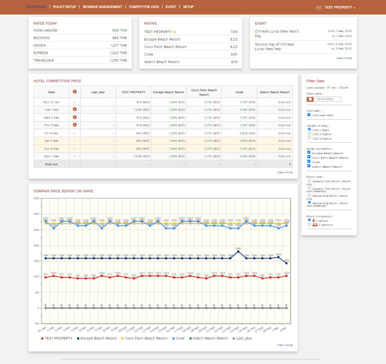 Provides instant insights into your competitor’s data (snapshot of 30 days ahead) vs. your property.